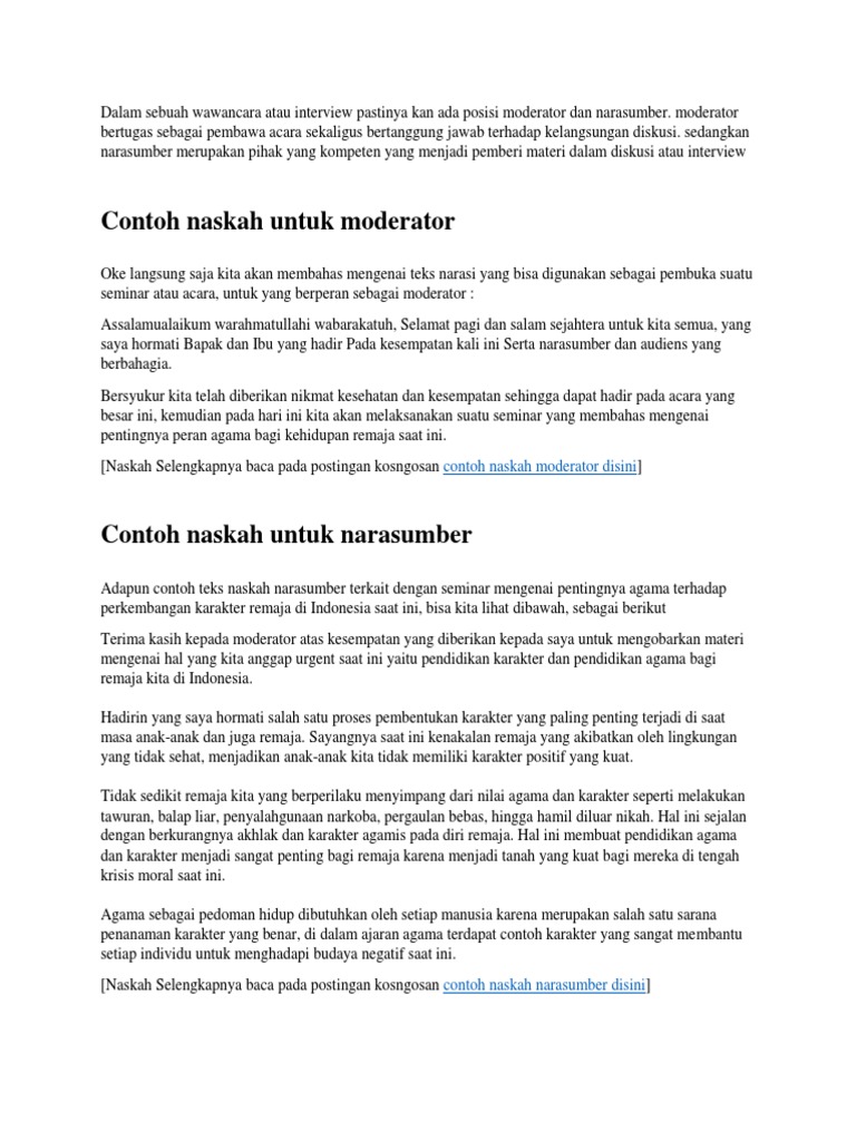 Pdf Contoh Naskah Moderator Dan Narasumber Reza Harahap Academia Edu