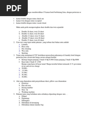 Demikian Penjelasannya Tentang Contoh Soal Pilihan Ganda Tata Graha Atau Housekeeping Beserta Jawabannya. Inilah rekomendasi tentang contoh soal sistem koordinat kelas 8 beserta jawabannya. Bengkel dan laundry c.